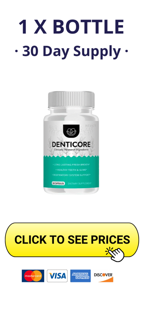 DentiCore Pricing Options: The supplement is available in three convenient package options designed to meet different needs and budgets: **Single Bottle (30-Day Supply):** Perfect for first-time users who want to try DentiCore before committing to a larger purchase. This option includes one bottle containing 60 capsules, providing a full month of supplementation at the recommended dosage.